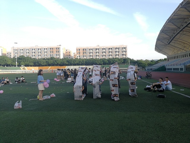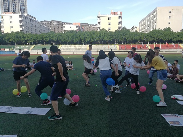 特色班会伊始两个班分别进行唱班歌,不仅活跃了现场的氛围,而且带动了大家参与活动的积极性。然后,开始进行游戏,第一个游戏是“踩气球”,每班每轮8名选手,每人绑两个气球,互相踩其他人的气球。淘汰制,气球被踩完者淘汰,最后生科二班取得最后胜利。第二个游戏是“铁马战车”,成员用旧报纸制造一个封闭圆环,成员在圆环内进行前进,食品一班最先通过终点,赢得比赛。第三个游戏是“你画我猜”,一人可以用手式做出动作,另外一个人猜词语,最后生科二班取得胜利。最后,由食品一班班长龚淼总结了这次活动,她说道,此次活动效果良好,增强了两班同学之间的互动,同时增强了同学们之间的集体意识。