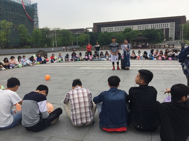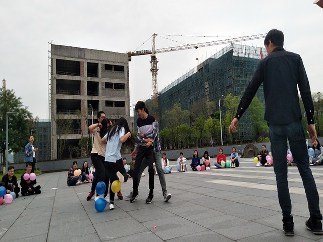活动伊始,首先由主持人阐述了此次特色班会的活动目的及各活动项目。紧接着由各班纪律委员点名,两个班皆全员到齐,文体委员带领各班齐唱班歌。随后,进行第六感游戏,两人一组,共五组,两人均蒙住眼睛,面对面而站,待主持人宣布游戏开始后,两人原地顺时针旋转五圈,凭感觉站在搭档对面,搭档成功者获胜。场外观众可通过语言干扰或帮助选手。游戏以选手摘下遮蔽物为标志,可多组同时进行。现场气氛热烈。接下来进行东拼西凑游戏,6人一组,共3组,在现场剩余的同学中寻找到目标物品,在所有东西收集齐以后所有人微笑拍照并把东西全部展示给主持人,主持人清点完毕,最先完成的小组获胜。然后进行踩气球、大逆不道等游戏。大家相处十分融洽,友好和谐。最后以两个班同学集体大合唱作为本次特色班会的完美谢幕。至此,本次特色班会圆满结束。
