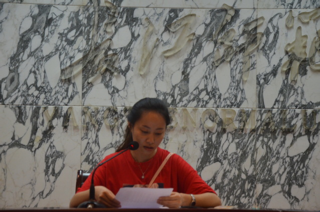 会议伊始,辅导员进行了大学的最后一次点名。接着韩宗先老师就毕业论文的相关事宜进行了详细的解说,在解说最后,韩院长说道:“有什么不理解或者操作上的困难尽管和学院老师说,学院一直是关心着大家的。”