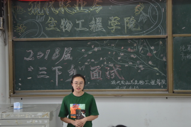 为深入贯彻习近平总书记系列重要讲话精神,引领和帮助广大青年学生在社会实践中受教育、长才干、作贡献,以青春建功的实际行动,为全面建成小康社会、开启社会主义现代化建设新征程贡献青春力量。6月13日下午6点30分,现代农业与生物工程学院2018届“三下乡”面试选拔会于格律楼03阶梯教室顺利开展,担任本次面试评委的为2017届暑期“三下乡”各小组组长,现代农业与生物工程学院16、17级的同学都积极踊跃参与竞选。