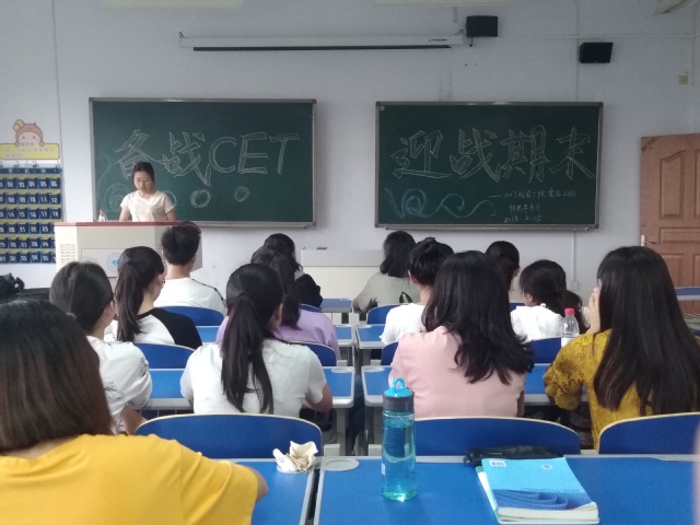 为了正确指导同学们为即将到来的英语四六级做好充分准备,让同学们对四六级有一个全面系统的认识,从而能根据自身情况选择复习途径,找到应对问题的方法,2018年6月15日,现代农业与生物工程学院17级食品二班的全体同学于诚意楼404开展了以“备战CET,迎战期末”为主题的特色早自习活动,此次活动由班长黄鑫担任主持人,17食品二班全体同学参与。