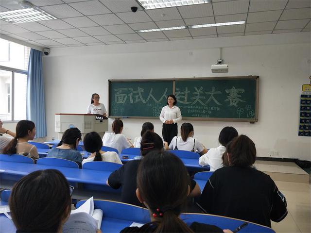 本次活动分为五个大组,每组9-10人,1人主持,3人作为面试官,3人作为面试者。面试职位有中学生教师、食品质检员等职位。活动伊始,主持李源向大家讲道:“模拟面试实际上是给我们一次实际锻炼的机会,让我们在毕业找工作前感受真正的面试,有利于增强我们就业的信心,提高求职成功几率。大家要好好把握这次难得的机会,好好表现自己。”