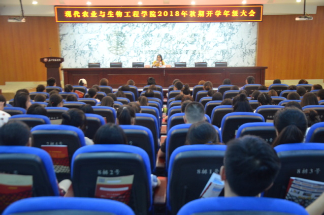 为了让同学们从假期的娱乐中回归到学校的日常学习生活中,更好的适应新学期,迎接新学期的到来。9月2日下午16时,现代农业与生物工程学院2018年秋期开学年级大会于鉴湖学术报告厅中举行。出席本次年级大会的有农工院党总支书记张敏书记、16级辅导员陈丹老师以及17级辅导员何思源老师,参与大会的还有16、17级全体同学。