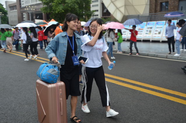 期间,张敏书记不时的向新生家长介绍学院;李吉老师会询问新生报到情况;2018级辅导员胡代芳老师和工作者一起解决家长疑惑;志愿者们主动帮助学弟学妹拖箱子、拎袋子,带领新生在寝室楼里办理入住。一切就这样如火如荼的进行着,随处可见新生憧憬与好奇的脸庞以及工作者忙碌的背影。