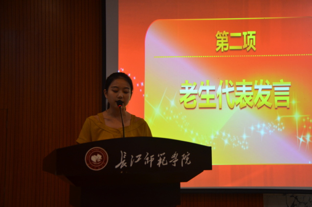 首先由新生代表周滟涵发言,她认识到长师也将是他们人生的新起点、新征程,并呼吁全体18级新生要尽快调节自己的状态去适应新环境、新生活。除此之外,作为新生应当充满自信、勤学多问、踏实地积累知识与提高技能,坚信学高身正、就业自强的信念。接下来,由老生代表田芹发言,学校为我们提供了良好的生活环境,希望同学们能够合理的运用资源,多参与实践活动或进入学生会,全面的提升自己,发展自己。紧接着,由教师代表宋晓宏发言,“作为一名教师本着传道、授业、解惑的宗旨,我们会秉承学高身正、就业自强的精神,老师永远是你们坚实的后盾。在老师们的带领与指导下,希望同学们能够成人成才,拥有美好未来。”典礼最后,由汪院长致辞。汪院长对新同学的到来表示热烈的欢迎,并向同学们详细地介绍了我院的办学历史、师资力量、教学设施及专业特色,并向同学们提出了美好的希望,希望广大新生树立远大、正确的理想,了解大学的学习管理规定及实施过程,学会把读书、思考、实践有效结合起来的同时做到从被动学习向主动学习、研究性学习的转变,从而提高自身综合素质。