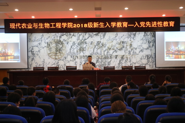 为了让18级新生了解党的基本知识和组织发展程序,2018年9月13日晚上7:00,现代农业与生物工程学院在鉴湖学术报告厅开展了以“树理想信念,做时代先锋”为主题的2018级新生入学教育讲座,主讲人为院团委书记李吉,参与人员为18级全体新生。