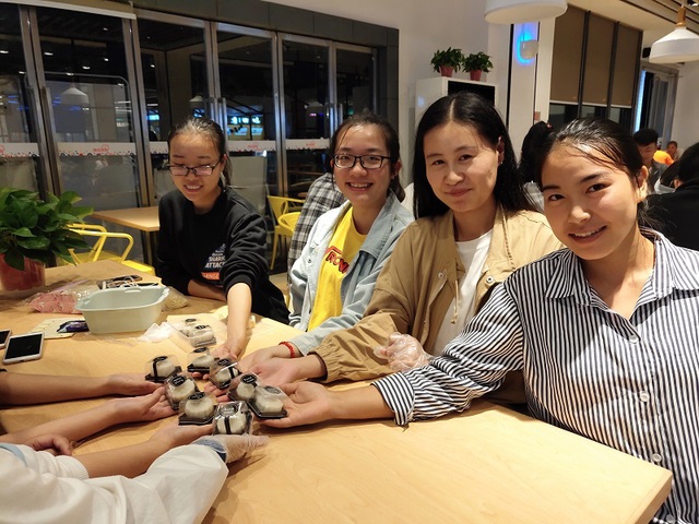 本次特色晚自习同学们亲自动手制作月饼,在动手操作中寻找到乐趣,让同学们体会做月饼的过程,缓解对家人的思念,感受到班级的爱。