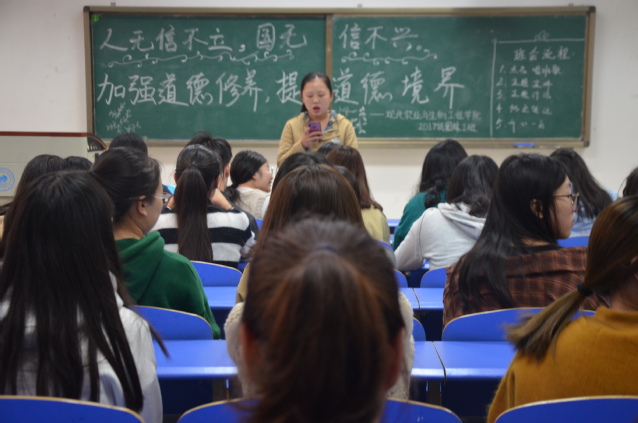 诚信作为一种基本价值观和道德观,是立身之本、处世之道,为使同学们牢固树立守信为荣、失信可耻的道德观念,懂得诚实守信是中华民族的传统美德,10月14日下午17:10至18:40,现代农业与生物工程学院在崇礼楼309-317开展了以“人无信不诚,国无信不兴”为主题的主题班会。本次班会由各班班长担任主讲人,现代农业与生物工程学院全体大一、大二、大三学生参与。