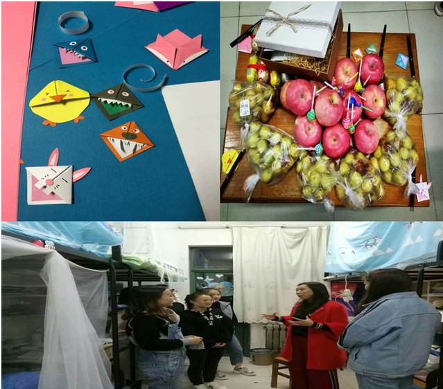 晚上,张书记利用休息时间到寝室去看望这六名同学,并给给他们带去了饱含寓意的礼物:苹果、红枣、火腿、棒棒糖。书记说,苹果能带给你们平安!圆圆火腿寓意着你们拥有壮壮的身体,红枣祝福你们早日学成归来,你们都如棒棒糖一般永远都棒棒哒!同学们心里甜蜜蜜的,感动之余,她们利用晚上休息时间,每一个同学都给班级集体写了一封长长的感谢信,呈现自己在上科大的学习状况,表达自己对班级的热爱,六个学生还给老师和班级每个同学写了明信片,寄托了他们对老师和班级同学的思念。辜苗同学说:“再看见学校领导和书记的那一瞬间,兴奋得有点热泪盈眶,就像孩子向好久不见的母亲在讲述出门在外的生活,感谢自己当初坚持了自己的决定,感谢长师领导老师的亲切关怀,跨越了一千八百多公里的距离来看望我们。感谢书记不辞辛劳,行程匆忙,但还是听我们诉说着生活琐事,挽着您的手走过其他学院同学的面前,他们羡慕的眼光,使我无比自豪。感谢袁老师陪伴着我们,无比细心的关照着我们的学习生活。”