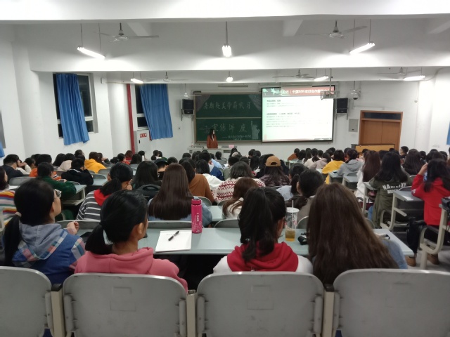 据悉,本次讲座分为两场,分别为七点到八点,八点到九点。首先,胡利平老师用一段视频切入主题,她为同学们介绍了2018年可参加项目名单及项目背景。然后她向同学们讲解了赴美细节,如“项目详解”、“五大实习岗位”、“薪资情况”、“项目本质及奖励”、“申请流程”、“项目费用”、“本校名额”等等。