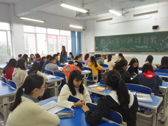 为了提升自我意志,继续弘扬军训精神。2018年10月25日早上7点30分,现代农业与生物工程学院2018级食品科学与工程1班于诚意楼402教室开展了以“热血军训,挑战自我”为主题的特色早自习活动。此次活动由刘澄谕同学主持,2018级食品科学与工程1班全体同学参与。