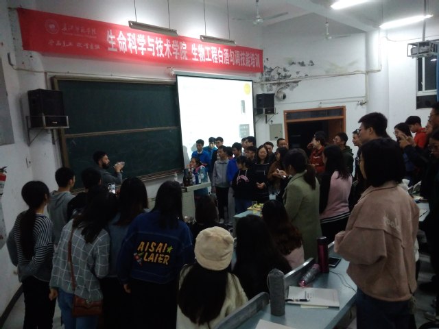 为弘扬和传承中国白酒文化,普及品酒勾兑知识,发现与培育白酒行业方面的品酒人才,促进中国白酒行业持续、健康与快速发展。2018年10月27日至28日,生命科学与技术学院分别于格律楼04和正心楼01阶梯教室开展了为期两天系统性强、专业度高的 “生物工程白酒勾调培训会”,在王庆老师的组织和策划下,我院2016级生物工程1、2、3班全体同学悉数参与到此次培训会当中。