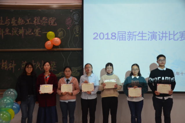 为了让18级学生思考自己的生活与学习,为自己树立远大理想,做好人生的规划,成为一位有志气、有担当的大学生。同时,提高他们的的演讲能力、表现能力等其他综合素质。2018年11月2日18:20,现代农业与生物工程学院于04阶梯教室开展了以“践行知精神,成时代栋梁”为主题的新生演讲比赛,本次比赛特别邀请18级辅导员胡代芳、科技部部长、学习部部长、主席团作为评委,18级学生部分参与。