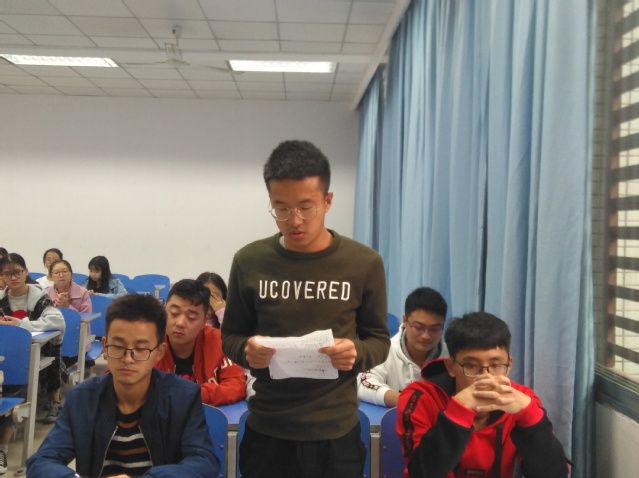 团会开始时,首先由纪检委员张川雨同学点名检查,其次是由文体委员龙银晴同学领唱团歌。然后是由敬爱的辅导员胡代芳老师讲解了“坚持以本为本,推进四个回归,建设中国特色、世界水平的一流本科教育”“教育部关于加快建设高水平本科教育,全面提高人才培养能力的意见”“教育部关于狠抓新时代全国高等学校,本科教育工作会议精神落实的通知”三个会议的主要内容并且还督促同学们要积极学习,不要让逃课、挂科、混文凭成为大学生的学习常态。辅导员胡代芳老师最后还送上寄语,希望同学们可以在大学四年里做到不挂科、不违纪和不处分,努力学习,奋勇拼搏,让自己的大学生涯不留遗憾。在老师讲话完毕后,主持人让同学们就“优良的学风将会带来怎样的效果” “班级的建设需要如何去维护”展开讨论,每一位同学非常认真地讨论着这两个问题并且在讨论结束后都特别积极踊跃地举手发言。最后由班长王晴同学进行了例会传达,讲明了一些关于班级早晚自习的违规措施并且希望同学们可以遵守规章制度,一起努力学习。