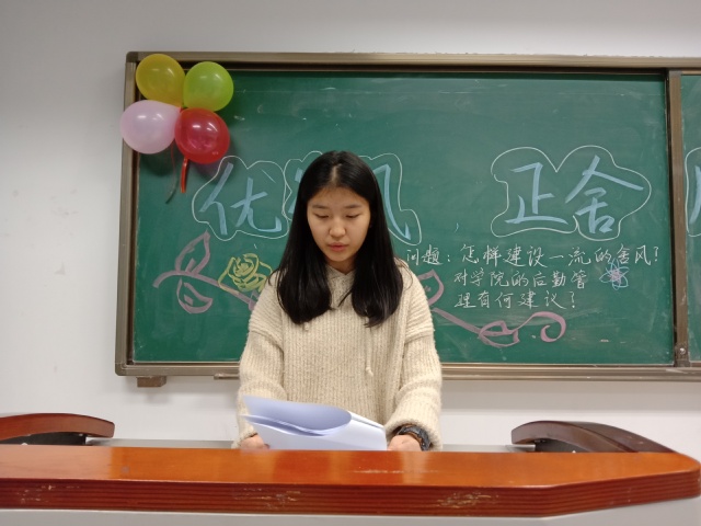 活动伊始,各班纪检委员清点人数,确保人员到齐。然后,由主持人介绍本次特色晚自习的活动背景与目的,他表示积极向上、和谐优美的社区文化氛围,能够促进学生身心健康,使学生更好地成人、成才。紧接着,主持人带领同学们学习了《关于举办首届新生寝室规范化建设评比活动的通知》文件精神,以及《学生手册》中第16点<长江师范学院学生日常管理办法>。就此,他提出了以“怎样建设一流的舍风”、“对学院的后勤管理有何建议”为中心的主题讨论。同学们都积极参与并踊跃发言。最后,生活委员带领大家签署《关于在学生宿舍诚信用水、安全用电的承诺书》,并由主持人总结。至此,此次特色晚自习活动圆满结束。