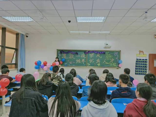 团会伊始,由团支书带领同学们唱共青团团歌,并介绍了本次团会的背景及目的,她表示做一名新时代的大学生,应该端正自己的学习生活态度,营造严谨,勤学,上进的班级学习风气。紧接着,班导师向伟老师为同学们讲解了我国教育大会会议精神以及长江师范学院拟定的具体条例,并详细介绍了“四个回归”和全国教育大会新四条。老师结合班级实际情况,提出了一些具体要求,他强调一定要杜绝课堂上耍手机、考试作弊等行为,并且向同学们提出了零补考,英语四级全员过、六级尽力过的期望。其次,同学们就“大学生如何严于律己”、“有哪些可行具体方案”进行了积极的讨论。班导师也对此进行了补充。最后,主持人说希望我们一班的同学都很不一般,大家共同努力,持之以恒坚持不懈,共同进步建设一个更优秀的班集体!至此,本次团会圆满结束。