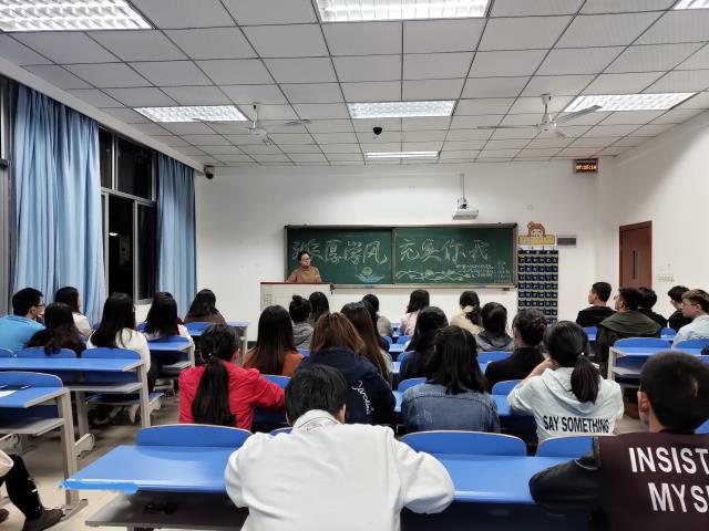 活动开始,主持人申湘玥清点学生人数并做了简单的开场,对本次活动进行了简单的介绍。随后陈丹老师对从各个方面对良好学风的建设培养做出了详细讲解。首先陈老师向我们传达了国家教育部及学校关于学风建设的相关文件,让我们认识到学风建设是全国性的,是必须的措施。然后陈老师着重对对我院关于一流学风建设全体动员的讲稿进行了宣读和传达,并提到了“以本为本”“四个回归”, 即回归本真,回归育人,回归初心以及回归梦想。