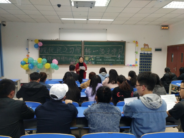首先,班导师表扬了我们班具有对作业要求严格、不懂就问、课堂氛围活跃的优点。但同时也具有作业拖沓的缺点,常常不按时上交作业。他希望在接下来的学习生活中我们能够改正这一缺点。