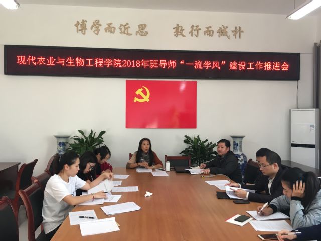 2018年11月2日下午16:30分,现代农业与生物工程学院于3216会议室召开了2018年班导师“一流学风”建设工作推进会,会议由党总支书记张敏主持,院长汪建华、16、17、18级各班班导师以及辅导员参加了此次会议。