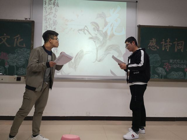为进一步响应学校学风建设的工作任务,促使同学们深刻感受“以本为本,四个回归”的教育思想,促进班级整体文化氛围提升,经18园林2班全体班委研究决定,于2018年11月19日在崇礼楼312教室特地举办此次“品传统文化,感诗词魅力”主题特色晚自习。2018级园林2班全体同学参与此次活动。