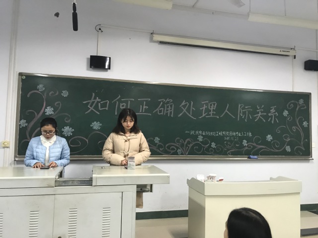 为了让同学们了解如何与人正确相处,营造园林这个温暖的大家庭,加强同学们合作的默契度,使之更高效的完成工作。11月21日早上7:30,现代农业与生物工程学院18级园林1、2班于诚意楼406开展了以“如何正确处理人际关系”为主题的特色早自习,此次活动由园林1班张雪颖和彭月担任主持,园林1、2班全体同学参加。
