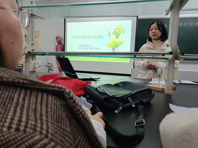 中学生物科技活动指导实践是生物科学专业学生创新性、挑战性于一体的大型专业实践课程,是面向生物科学专业能力实践的必修课程,是培养创新型中学生物教师队伍的重要课程。本次实践周实训课程,学生每四人分为一组,各选取一个项目内容,据所选的项目,查阅资料、准备实验器材、撰写教案、组内反复互相讲授,模拟作为中学生物科技活动指导教师,组内其他成员作为中学生物科技活动实验员,由模拟的指导教师对班级其他学生进行授课及指导,最后指导教师进行点评,学生互评,提出改进措施。一周内完成教学内容,主要锻炼学生设计中学生物科技活动题目,并主动进行授课准备、教案撰写、设计并指导活动实践过程和论文撰写的能力。中学生物科技活动,是生物学教育的一个重要组成部分,是使我们形成知识并提升科学素养的重要途径之一,是课内学习的重要补充,特别是培养将来从事中学生物教学工作的人才方面,起着明显的作用。至此,本次实践活动圆满结束。
