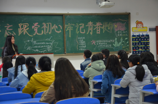 活动伊始。首先,各班团支书带领大家进入今天的主题“不忘跟党初心,牢记使命”,为大家介绍了跟党走的重要性。其次,主讲人讲解了多年来时间验证了党的领导的正确性,跟党走,向着党指出的方向出发,并提出:我们都相信能收获未来,“为人民服务”,全心全意,是党的初心也是人民的呼唤,我们响应党,党领导我们走向美好的康庄大道。随后,主讲人提出问题,同学们围绕团会主题进行讨论,并积极发表自己的看法。并由主讲人对团会进行总结,同学们应该不忘初心,跟党走,实实在在的落实党方针政策,砥砺前行,收获未来。最后,主持人,提出,作为青年学生最本质即是做好“学生”的基本工作,学习、刻苦钻研学术知识,应当多响应组织的号召,积极参与社会实践活动。至此,本次活动到此结束。