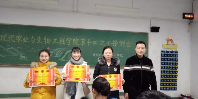 12月6日下午18:10在正心楼108教室进行了第七届师生田径运动会团体奖结果的公示以及颁奖活动。由现代农业与生物工程学院院团委书记李吉老师、16级辅导员陈丹老师进行颁奖。此次评比结果本着"实事求是、客观、公正"的原则,根据师生田径运动会中班级累积总积分评比出团体奖,同时也根据其他评比标准评出其他各个奖项。
