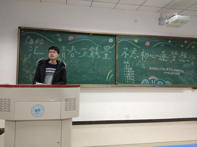 2018年12月16日晚上6点整,现代农业与生物工程学院16级生物科学2班于崇礼楼314教室开展了“汇聚青春正能量,不忘初心逐梦想”特色团会。白旭担任本次活动主持人,16级生科2班全体同学参加。