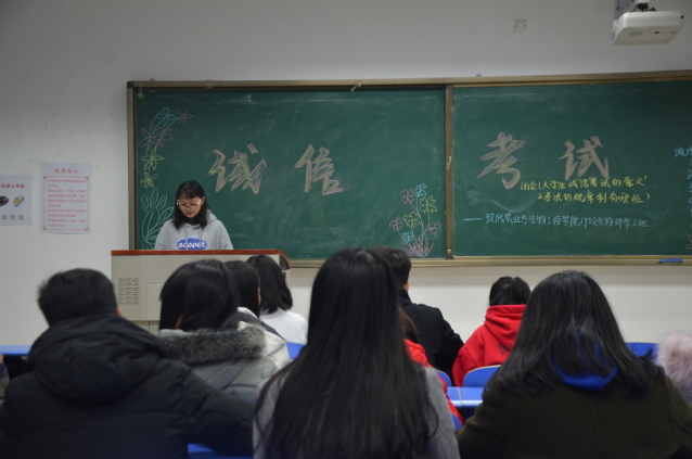 为了全面贯彻、认真学习考场纪律要求,指导同学们认真复习,做好考试准备和加强诚信意识教育,塑造良好道德品质。2018年12月23日下午17:30-19:30,现代农业与生物工程学院于各班班会地点开展了以“诚信考试”为主题的班会。,此次班会主讲人为各班相关负责人,参与人员为现代农业与生物工程学院大一、大二、大三全体学生。