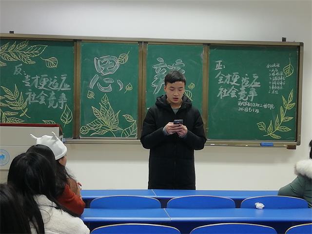为了让同学们充分展现在大学两年的学习生活里在思辨和表达上的能力,同时提高同学们的思辨能力,锻炼同学们的语言表达能力,提高综合实力,在求职过程中脱颖而出,2018年12月23日晚7时,现代农业与生物工程学院2016级园艺1班于崇礼楼315教室顺利开展了以“思辨”为主题的特色班会。此次特色活动以辩论赛的形式进行,由16级园艺班梁伦涛同学主持。16级园艺1班全体同学参加。此次活动还特意邀请了2016级辅导员陈丹老师和2106级园艺班班导师杜丽娜老师,旨在让同学们能够从老师身上学习更多的东西,以老师的专业点评给予同学们最有利的帮助。