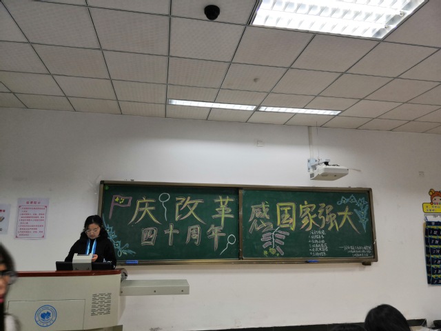 为庆祝改革开放四十周年,让同学们感受国家强盛,唤起同学们的民族自豪感,现代农业与生物工程学院18级生物工程1班于2018年12月23日下午5:30在崇礼楼309开展本次特色班会。班长柏裴担任主持,全班36名同学参加。