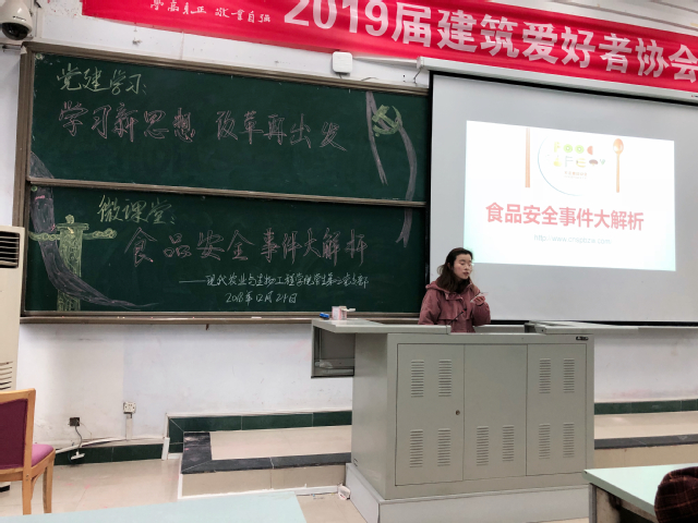 2018年12月24日中午12时20分,现代农业与生物工程学院学生第三党支部在诚意楼02阶梯教室开展了以“食品安全事件大解析”为主题的2018年12月微课堂活动。支部汪竹苇同志为本次活动的主讲人,出席本次活动的人员为现代农业与生物工程学生第三党支部全体党员和入党积极分子。