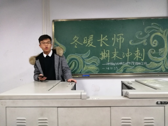 深冬渐临,期末将近,一个学期原来也就这么短。马上,大一的第一个学期就要结束了,检验这个学期学习成果的期末考试终究还是要来了,为了让大家能够对自己这个学期有个总结,特此于2018年12月23日下午5:30在诚意楼201教室举办了“冬暖长师,期末冲刺”的特色班会。2018级园林2班的全体成员参与了此次班会活动。