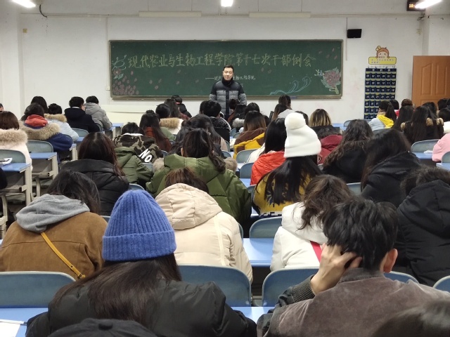元旦假期即将来临,同时同学们将要迎来期末考试。为了保证学生们在假期的安全以及期末复习的有效性,现代农业与生物工程学院在正心楼108室于12月27日下午18:10举办第十七次干部例会,院团委书记李吉老师以及全体学生干部参与本次会议。