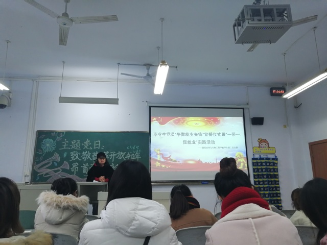 为充分发挥毕业生党员的先进性和模范带头作用,2018年12月28日下午17:00,现代农业与生物工程学院学生第三党支部于诚意楼201教室顺利开展了毕业生党员“争做就业先锋”宣誓仪式暨“一带一,促就业”实践活动,支部书记陈丹老师为本次活动的主讲人,三支部全体毕业生党员参与了此次会议。