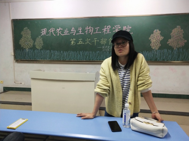 会议伊始,首先,由陈丹老师进行事务的传达。对于即将进行的校运动会、美食文化节及毕业晚会工作进行了阐述。对于校运动会啦啦操的工作,陈丹老师表示要认真积极的对待。对于本次美食文化节,她提到了这是现代农业与生物工程学院的特色活动,本次活动只对本院开放,希望到时候大家积极参与,认真做好相应的工作。其次,陈丹老师还提到这段时间是疾病高峰期,大家要注意身心健康。随后,主席团李月传达了校运动会啦啦操和毕业晚会演员招募的消息。然后,主席团谢华提到奖学金的核对情况和早晚打卡制度,并希望同学们对此制度引起足够的重视,提到早上没课的同学,还是应该积极参加阳光锻炼。最后,主席团杨佳鑫指出,对于即将开展的活动,希望相关部门做好相应的工作。至此,本次干部例会圆满结束。