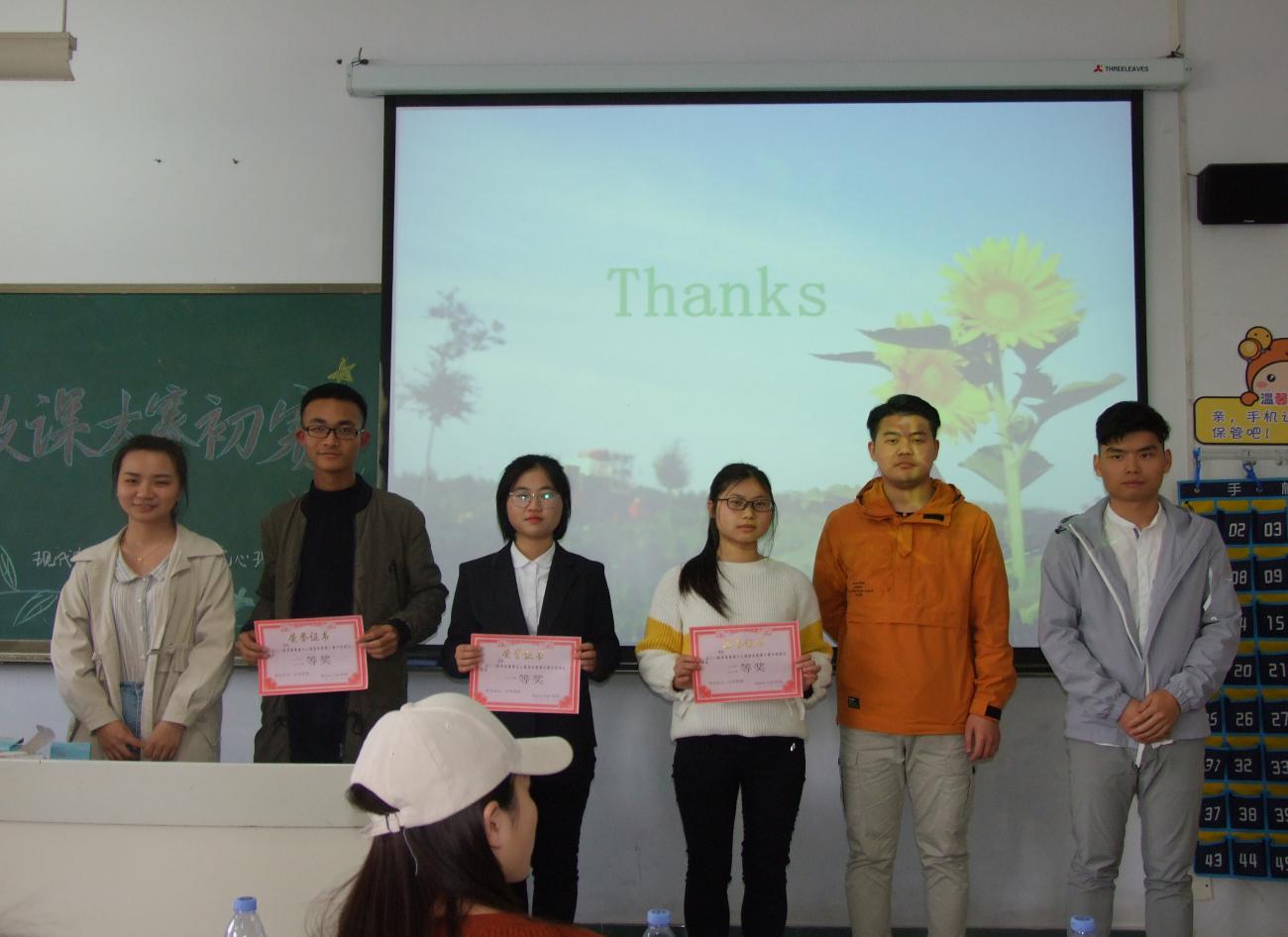 比赛期间,同学们精神抖擞,气宇轩昂,用自己特有的方式展示自己所讲内容。同时,对于没有及时到场的队伍我们也给予了一定的时间,超过一定时间视为弃权。有的同学因为紧张而忘记台词,有的同学夸夸其谈,比赛氛围极其浓厚,内容精彩纷呈,每个同学都乐在其中。最后在激烈的竞争中选出了本次活动的前六名队伍,由评委为其颁发证书并合影留念。