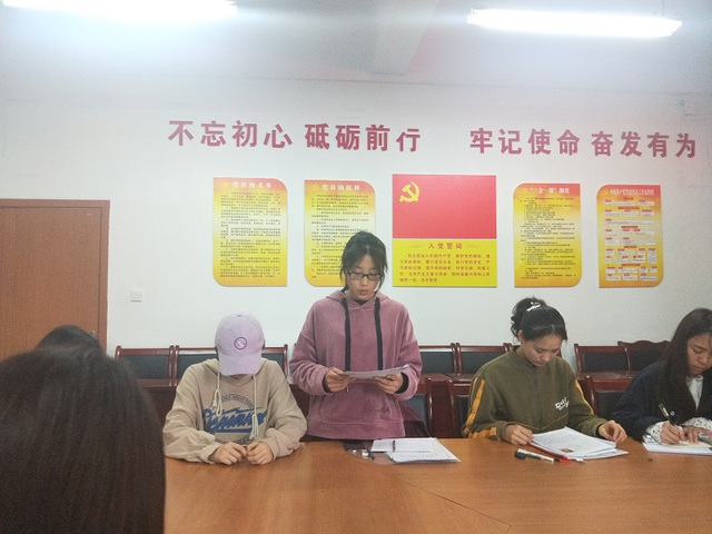 此次会议主要分为三项内容。会议第一项由组织委员清点到场人数,第二项由园林专业16级一班学生游海燕、园艺专业17级一班学生唐雅楠依次进行入党志愿宣读和陈述。本次发展对象主要围绕自身优缺点、对党的认识、自己思想态度和工作学习感悟进行发言,表明了自己希望迫切加入共产党的决心。其次,第一、二介绍和其他党员分别发表意见。游海燕同志成绩优异、对工作有热情做事积极、态度严谨、热情开朗有很好的群众基础但自信心略有不足、干部经历不太丰富、办事效率有点低未来要不断努力加大学习力度;唐雅楠同志待人礼貌、性格开朗、成绩优异集体观念较强但自学能力不够、人际沟通能力不强且过于拘谨不够大胆;最后,与会正式党员10人,对发展的2名同志进行了无记名投票,2名同志全票通过正式发展成为预备党员。会议最后,主持人进行了总结。至此,本次会议在掌声中落幕。