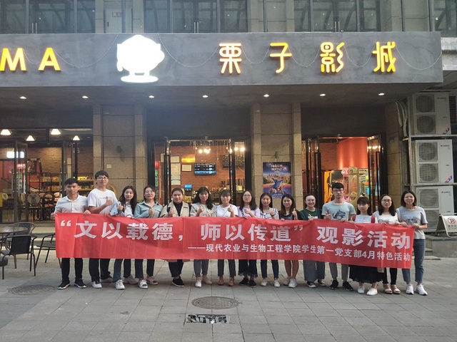 中华上下五千年这样灿烂的人类文明得以延续靠的是教育和老师。为进步加强生物科学系的同学们的教师使命感,以后能成为一名优秀的人民教师教师。现代农业与生物工程学院学生第一党支部于4月22日晚19:00在李渡聚龙大道栗子影城开展以“文以载德,师以传道”为主题的特色观影活动。本次活由学生党员呼雪琦担任负责人,学生第一支部所有在校党员及预备党员参与。