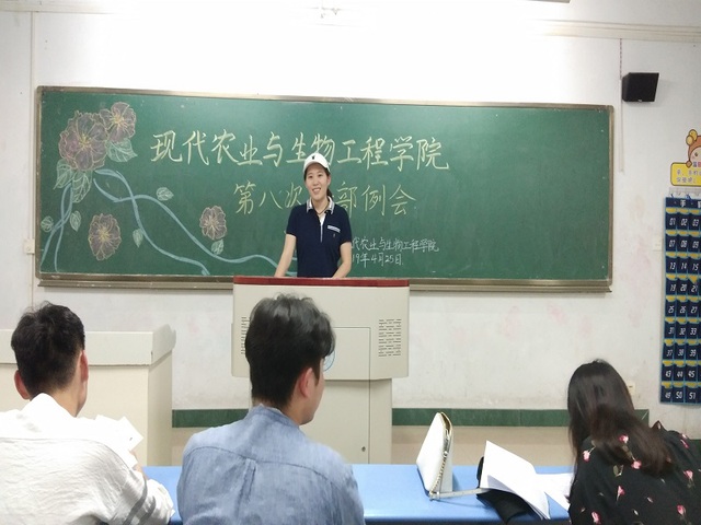 为了让大学生群体有良好的安全意识和积极健康的心理,现代农业与生物工程学院于4月25日18:10在正心楼108开展了第八次干部例会。此次干部例会由全体干部和班级三大班委参加,2017级辅导员何思源老师和2018级辅导员胡代芳老师作为主讲。