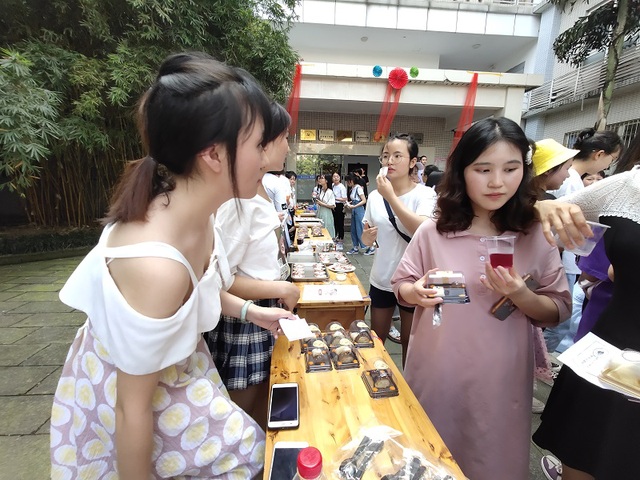 活动正式开始后,在美食展示品尝区有由食品系学生在专业老师指导下制作特色食品,糕点等供学院师生品尝。一盘盘各式各样的水果拼盘、甜品、果汁等就呈现在了大家眼前。现场弥漫着诱人的香味,各位同学都迫不及待的想去品尝这些美味。每个摊位前都排着长长得队伍,翘首企盼美食节到来的同学们迫不及待地来到现场,身心放松地享受这一场饕餮盛宴。各位老师也加入搜索美食的人潮当中。一边是摆满各色美味的大展会,一边还有专业风采展示,根据各专业特色作出展示用品有生科专业的叶脉书签、生工的酒文化、园林园艺的微景观等。更是让参加活动的同学与老师们回味无穷。美食文化节在欢声笑语中落下了帷幕,此次活动丰富了同学们的校园生活,向同学们传播饮食文化。