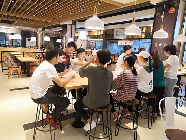 为了让作为食品人的同学们能够知道馄饨、云吞和抄手的区别;给同学们普及相关知识和部分地区馄饨的制作流程;也通过此次活动培养学生团结协作的能力,增进班级成员的情谊,因此于2019年4月28日星期日晚上七点整,在南苑食堂“快乐食间”二楼老麻抄手,举办了此次“爱心馄饨晚餐”特色晚自习。由学习委员康莉同学主持此次特色晚自习活动,2018级食品科学与工程1班全体同学参与。