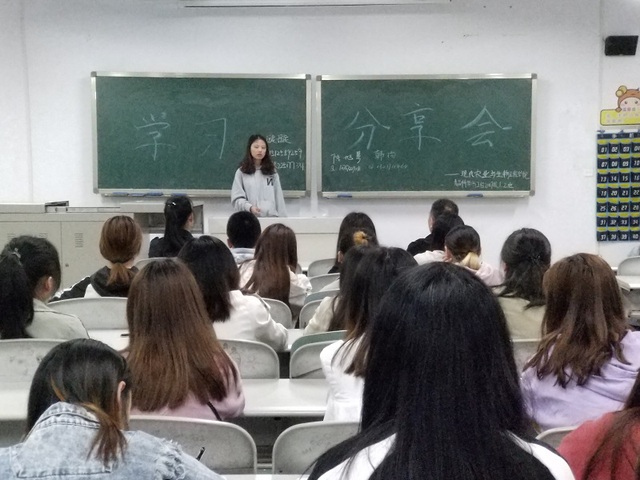 为了解答2017级食品科学与工程一、二班的同学们在考研方面所遇到的问题,并为有考研意向的同学提供平台,使同学们得到更好的发展,2019年5月5日,农工院2017级食品科学与工程一、二班于诚意楼208教室顺利召开特色晚自习。此次特色晚自习以“学习分享会”为主题,本次特色晚自习由食品一班班导师谭飔老师和食品二班班导师高晓旭老师共同主持,2017级食品一、二班全体同学参与,还别邀请了成功考研的来自2015级的柳璇璇、陈旭琴和韩杨三位学姐为我们分享她们的经验。