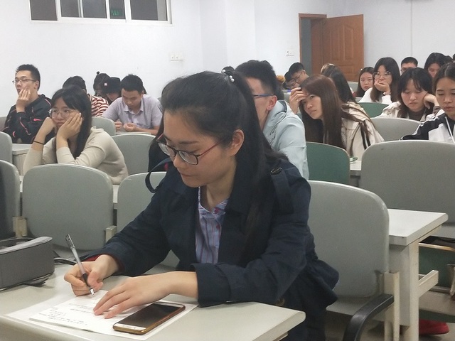 特色晚自习伊始,谭飔老师就对同学们提出了热切的希望:如果同学们能够真正从学姐们的分享中有所领悟,有所思考,那才算真正有所收获。然后,由三位学姐分别上台为同学们分享自己的考研经历。柳璇璇学姐为同学们介绍了具体的考研流程,并给出了宝贵的意见,陈旭琴学姐则从考研前的准备及平时的学习方面为我们介绍她的“制胜宝典”,韩杨学姐则用风趣幽默的语言为我们介绍如何平衡学习与生活之间的关系,整个活动过程中,同学们都保持着昂扬的精神。最后,谭飔老师与高晓旭老师分别对此次特色晚自习活动进行了总结。