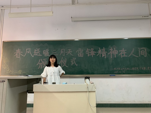 4月26日下午4点30分,现代农业与生物工程学院学生第二党支部于诚意楼206进行了雷锋月征文活动的颁奖仪式,廖名静同志主持了本次颁奖仪式。学生二支部党员、积极分子悉数到场。