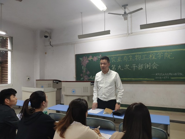 为了提高同学们的干事效率,让同学们更了解最近学院的发展,现代农业与生物工程学院于5月9日18:10在正心楼108开展了第九次干部例会。现代农业与生物工程学院党总支书记张敏老师和院团委书记李吉老师以及全体干部和班级三大班委参加,张敏书记和李吉老师担任主讲。