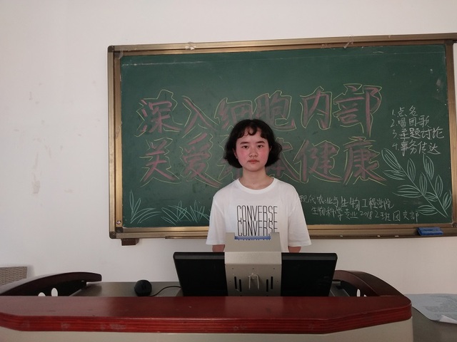 为呼吁同学们关爱身体,从微观世界了解身体工作技能,加强同学们对饮食作息的重视度,5月26日16:20,现代农业与生物工程学院18级生物科学专业于崇礼楼314教室举办了以“深入细胞内部 关爱身体健康”为主题的特色团会,由团支书龚心悦担任主持人,生物科学2班全体同学参加。