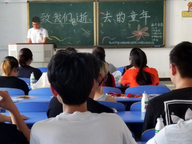 活动伊始,由纪检委员进行点名。随后,同学们在文娱委员许胜杰的带领下唱班歌。在阵阵悠扬的歌声中,此次特色班会正式拉开了序幕。首先,主持人张文韬向同学们介绍了此次活动的背景和意义。其次,在同学们热情的掌声中,不少的同学都纷纷主动上台分享自己在童年时做过的趣事、糗事以及对未来的畅想。而后,主持人张文韬指出:无论是曾经最爱吃的零食,还是曾经和父母、朋友一起经历的故事都将变成一笔笔美好的财富,留给我们慢慢珍藏!随后,本次特色班会进入同学们期待已久的游戏环节,由同学们自愿上台体验“是非题”和“传声筒”两个游戏的有趣之处。在整个游戏过程中,班级气氛热烈高涨,欢笑连连,也宣告着此次活动正式进入尾声。最后,主持人张文韬提醒大家将残留的垃圾随身带走,也正式宣布此次特色班会活动圆满结束!