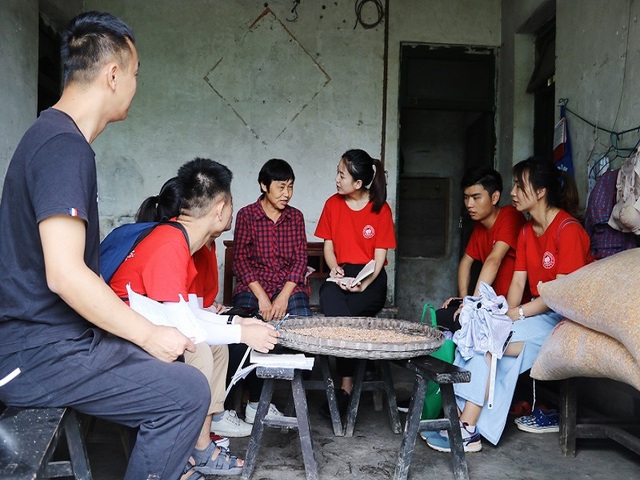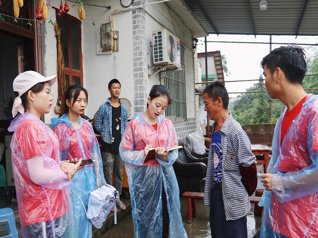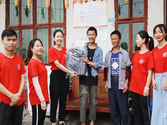 志愿者们到达了第一户村民杨其芳家,映入眼帘的是他们的眼睛是银河不落的星系,永远闪烁着希望。即便在黑夜里不辞辛苦地对抗生活也绽放光彩。户主无奈的话语中,志愿者们知道了他们家共有四口人,妻子和大女儿都有严重的智力问题,与人交流困难,小儿子有轻微的智力问题,正在就读中专。因病致穷、缺乏劳动力、需要照顾一个妻子和两个儿子是导致他们家贫穷的最主要原因。紧接着志愿者们来到了第二户村民邓后书的家,铿锵有力的欢迎声,满脸是笑的淳朴感。婆婆说道家里共有两口人,儿子在外打工,无固定收入,30多岁也未成家。现在所居住的房子也是婆婆表妹的,家里也存在几处漏水,身体也常常不好,常年一人单独在家居住。